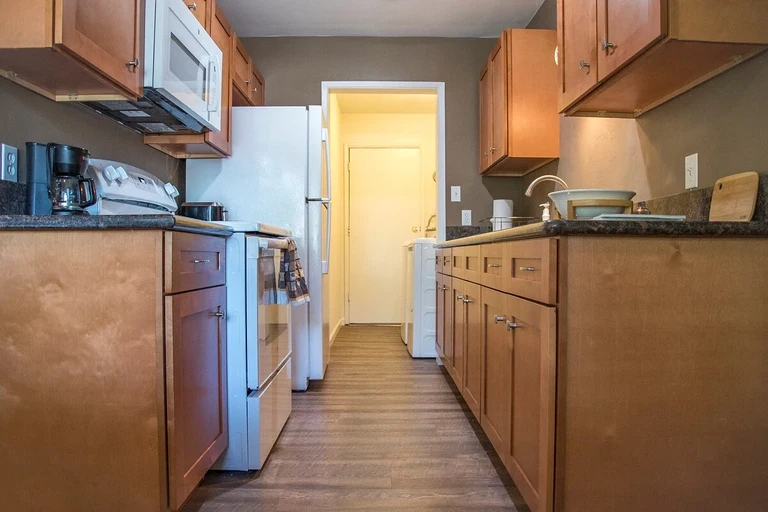Entire apartment with laundry room in the unit. One covered, reserved parking space. There are two stories and no elevator. Please let me know if you must be on the ground floor. Please request pre-approval for pets. Additional fee applies. Please notify us if you have an electric vehicle.