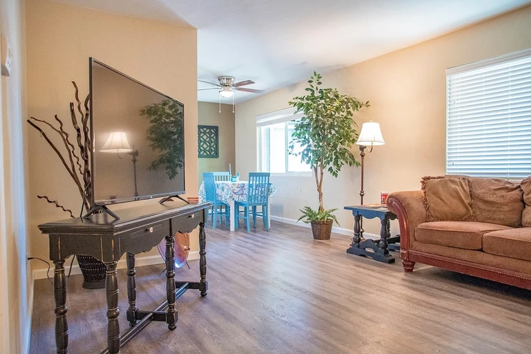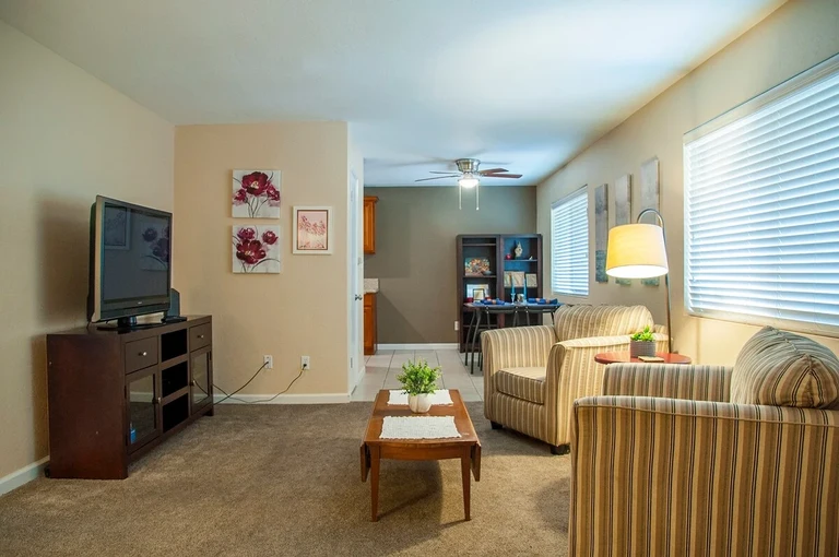 Attractively decorated apartments in a small gated complex less than 1 mile from Downtown Visalia, the Convention Center, Kaweah Delta Hospital District, close to Rawhide Stadium. Grocery store, convenience store walking distance.