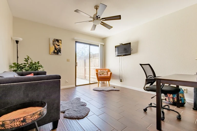 There is an office/study room for all guests to use, in addition to the living room, kitchen, dining room, and laundry room. Garage parking is provided.